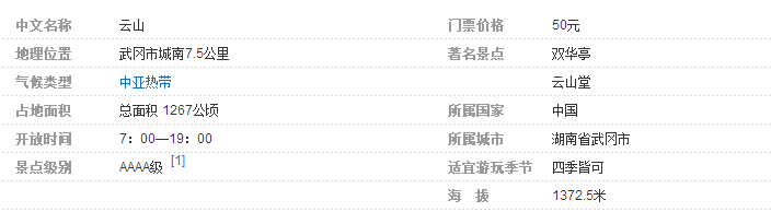 云山,这里集名胜、古迹、森林于一体,历为武冈风景名胜区。自山麓至山顶,盘蹬而上五公里,峰峦簇峙,云雾缭绕。据清光绪《武冈州志》载:云山为七十三峰,一峰飞去靖州城外,遂成胜景,余峰名多失考,唯紫霄、日华、月华、芙蓉、香炉著称,称道家六十九福地。云山风景秀丽,素为旅游胜地,古今名人题咏甚多;宋高宗载赵构感叹曰“云山七十一峰,烟云变幻”,明代礼部主事潘应星曾题“仙桥横汉”、“崖前帘水”等十景,并流传许多美丽动人的传说。原国家领导人华国锋亦题为“楚南胜境”。武冈云山自然保护区1982年经湖南省人民政府批准设立,属省级自然保护区。1992年,经原国家林业部批准建立云山国家森林公园,其核心就是云山自然保护区,保护区由森林公园直辖。 [1]